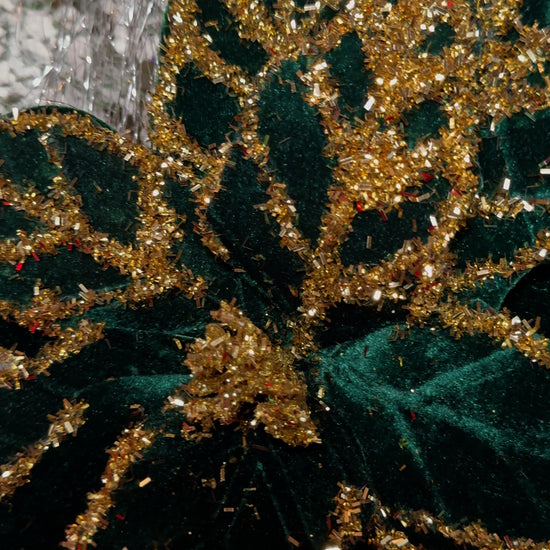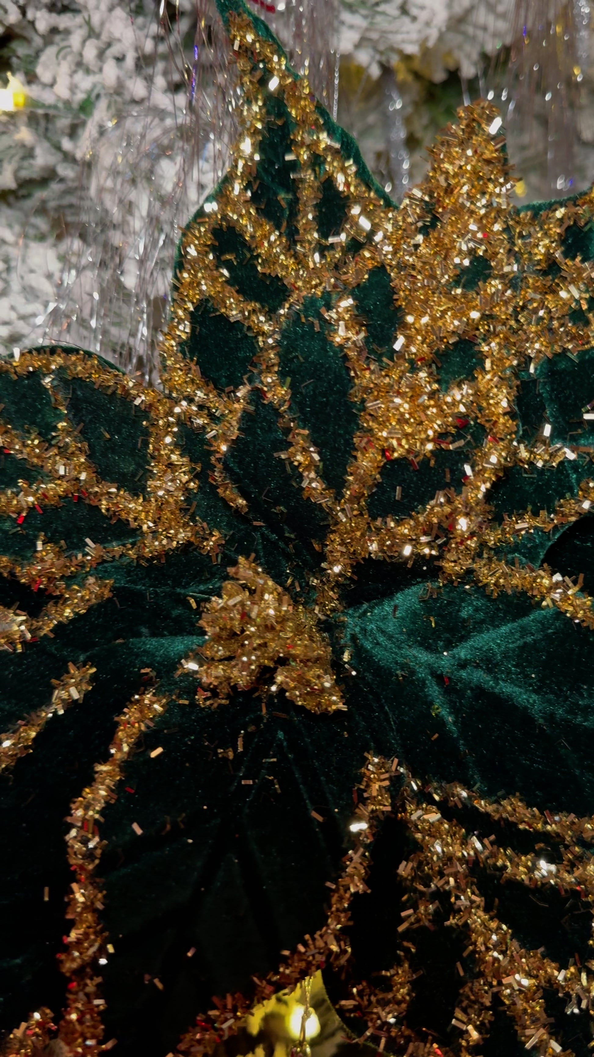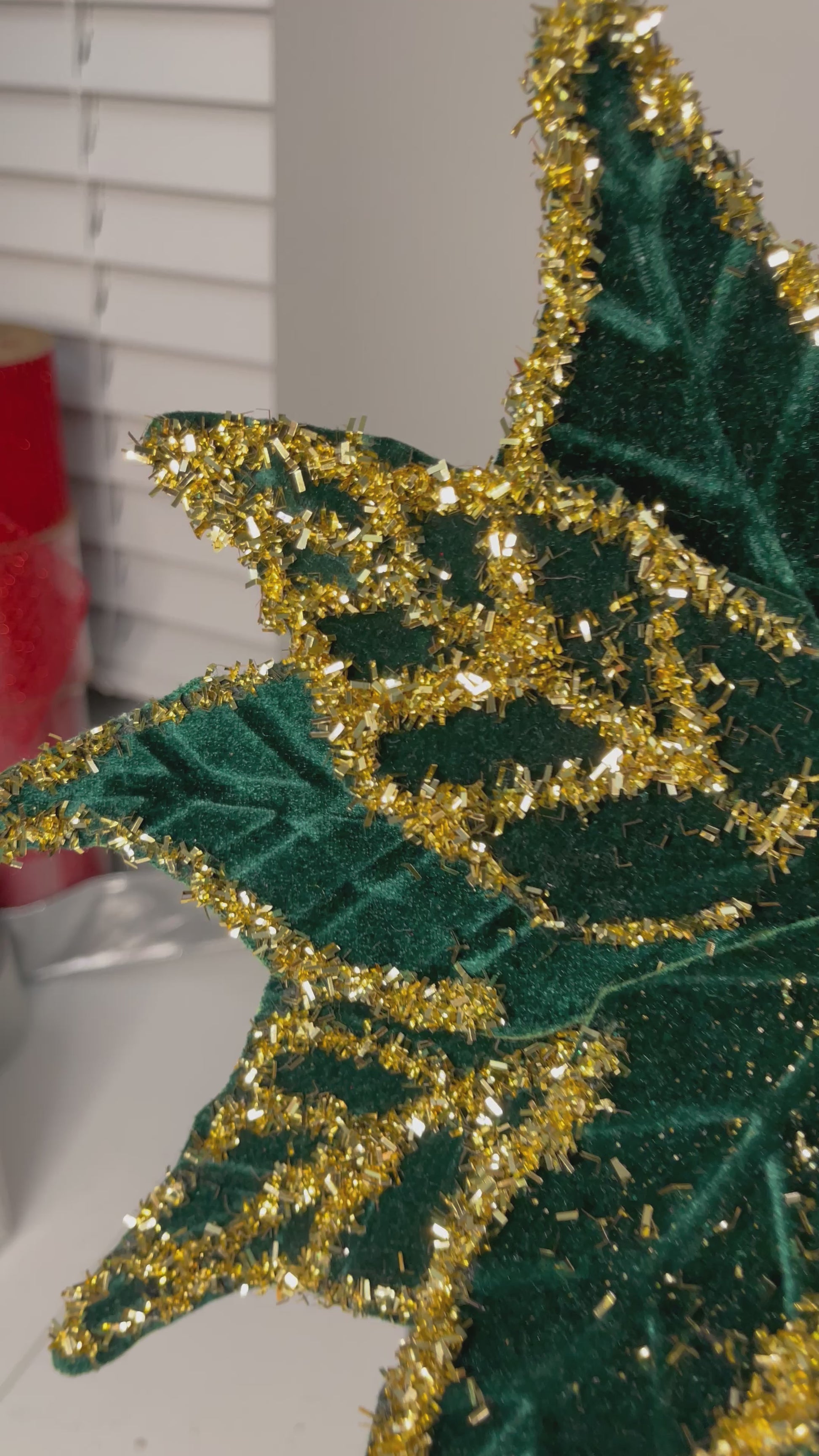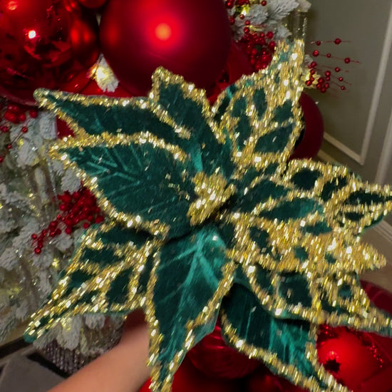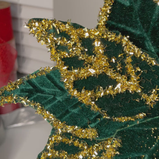 Green and Gold Glittered Poinsettia Christmas Flower Stem Spray 13'' Set of 3