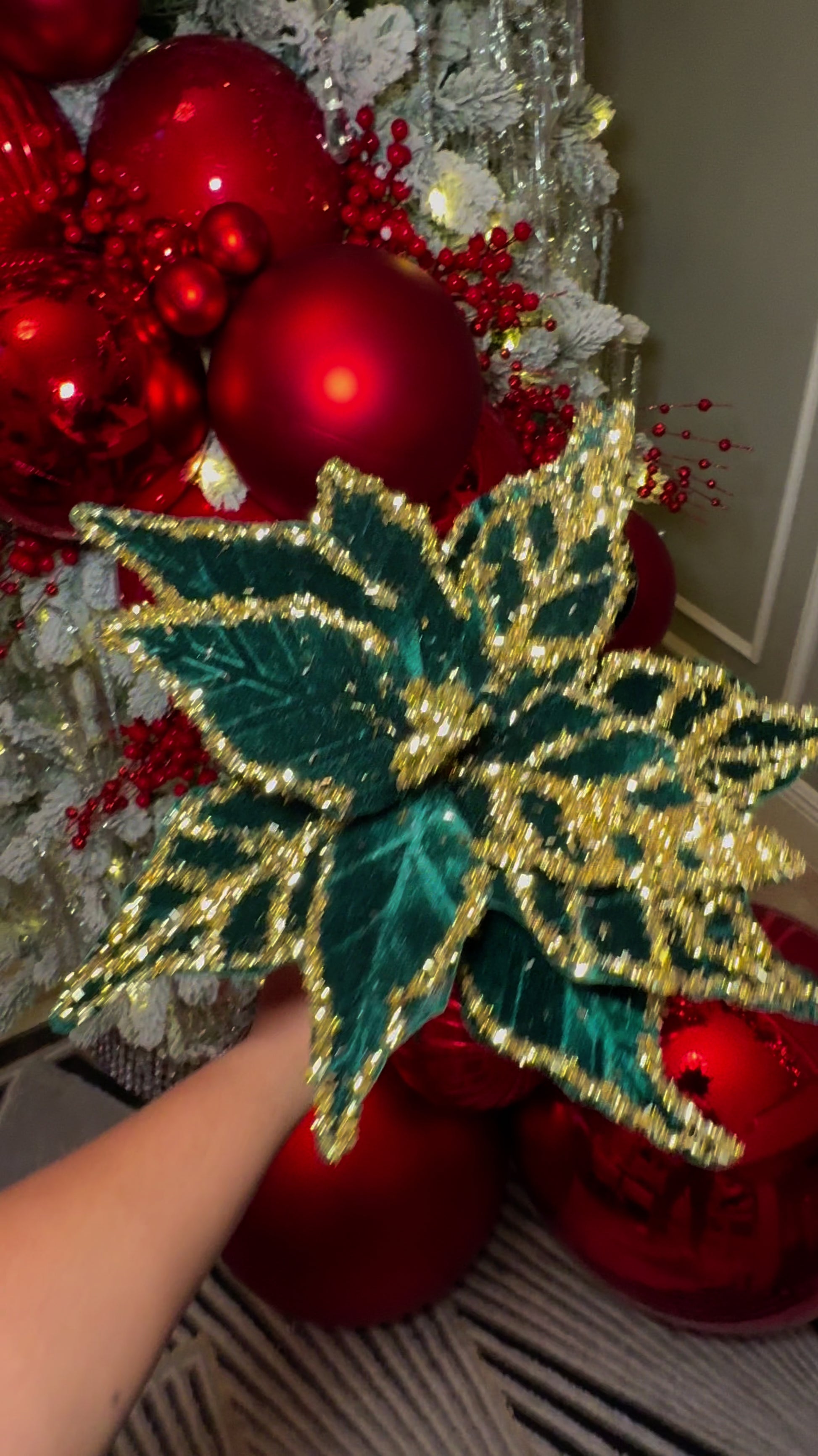The combination of green and gold, along with glitter, makes this stem spray a versatile and eye-catching choice for enhancing your holiday decor with a touch of elegance and festive sparkle.