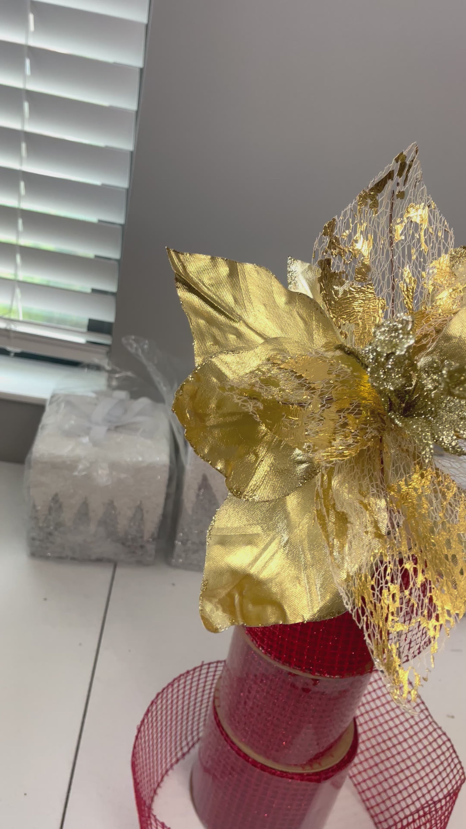 The combination of metallic gold and mesh creates a visually striking and elegant poinsettia stem, making it a versatile choice for adding a touch of glamour to your holiday decor.