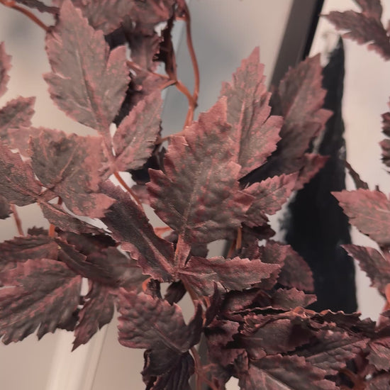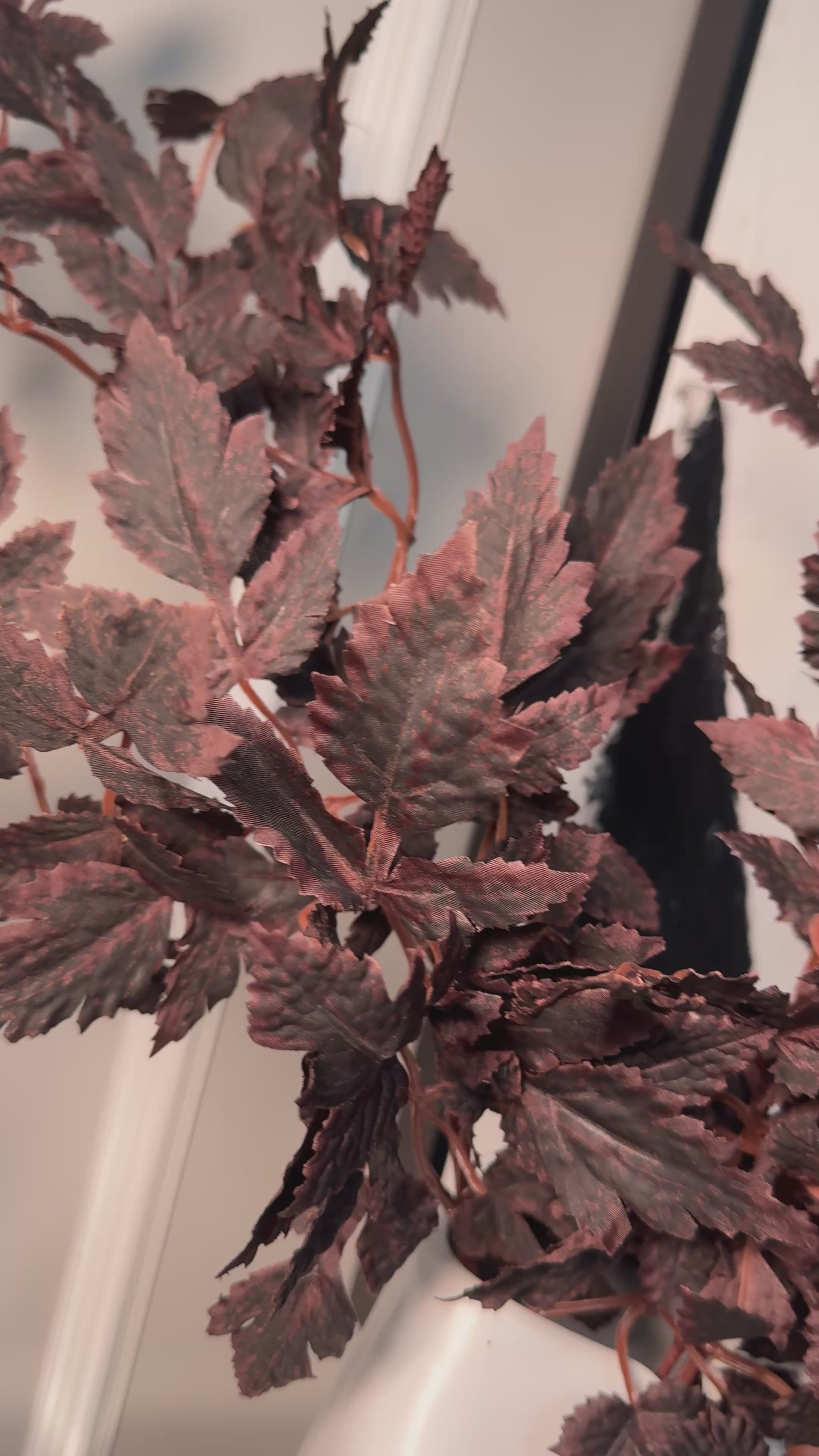 Bring the rich, dramatic hues of autumn into your home year-round with our Plum Faux Cimicifuga Ramosa Leaves. This bundle of three 32-inch stems captures the untamed beauty of the "Bugbane" plant, with delicate, branching spires in a deep, moody plum and burgundy palette.